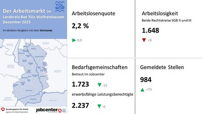 Weiterhin niedrige Arbeitslosenquote. Nur leicht gestiegene Arbeitslosenzahl.